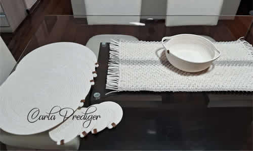 mesa, cestinho, 4 sousplat e 4 porta copos. R$ 450,00